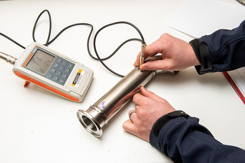 Ferrite testing, also referred to as a ferrite scope test, is a rapid non-destructive inspection method used to measure the amount of delta ferrite in austenitic stainless steel and duplex stainless-steel materials. Ensuring proper ferrite content ensures corrosion resistance, durability, and crack prevention.